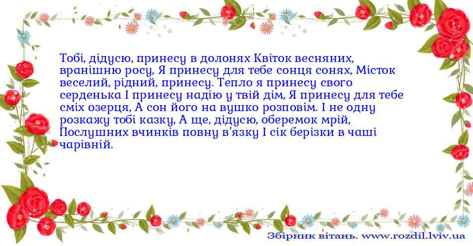Тобі, дідусю, принесу в долоняхКвіток весняних, вранішню росу,