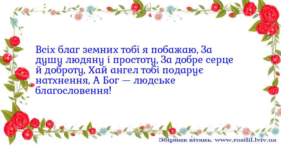 Всіх благ земних тобі я побажаю,За душу людяну і простоту,
