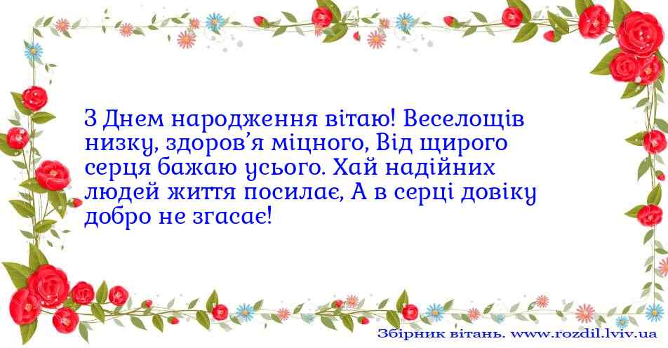 З Днем народження вітаю!Веселощів низку, здоров’я міцного,