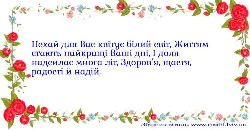 Нехай для Вас квітує білий світ,Життям стають найкращі Ваші дні,