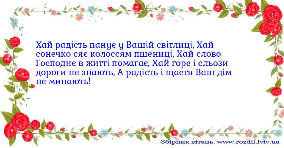 Хай радість панує у Вашій світлиці,Хай сонечко сяє колоссям пшениці,