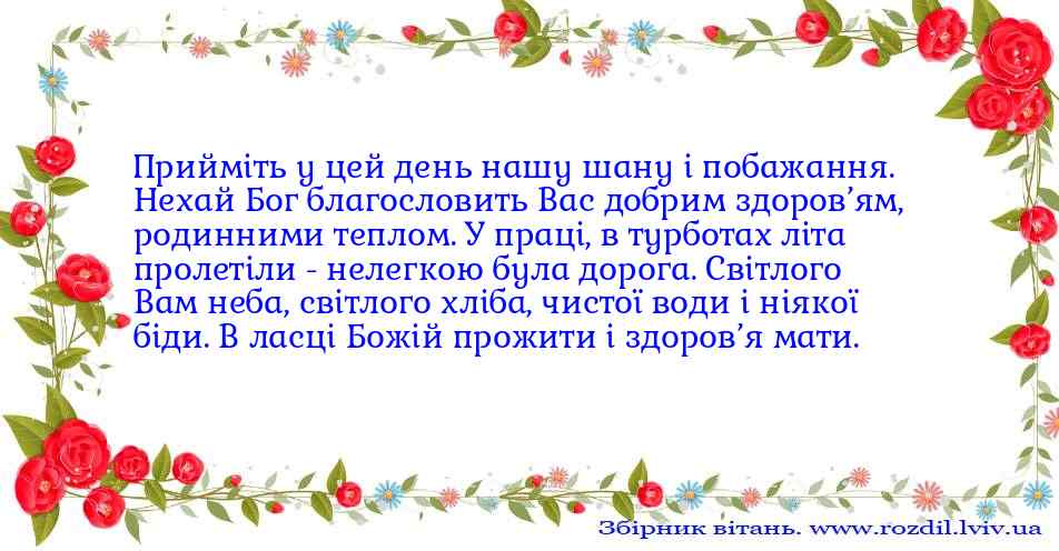 Прийміть у цей день нашу шану і побажання.Нехай Бог благословить Вас добрим здоров’ям, родинними теплом.