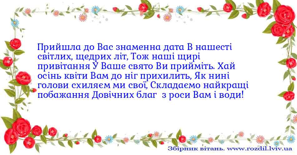 Прийшла до Вас знаменна дата В нашесті світлих, щедрих літ...