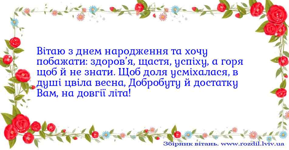 Вітаю з днем народження та хочу побажати:здоров’я, щастя, успіху, а горя щоб й не знати.