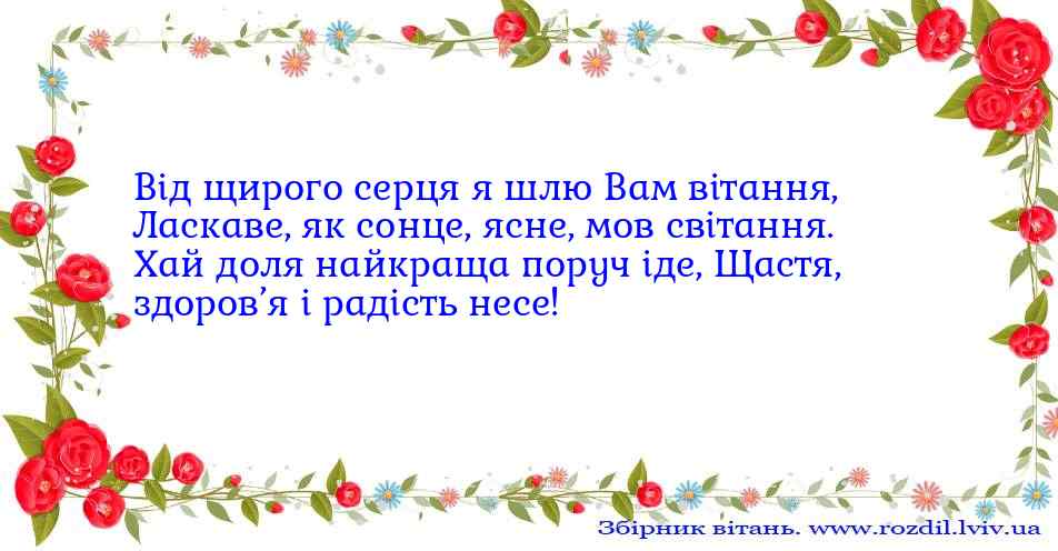 Від щирого серця я шлю Вам вітання,Ласкаве, як сонце, ясне, мов світання.