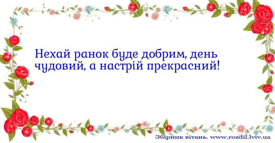 Нехай ранок буде добрим, день чудовий, а настрій прекрасний!вітання №316