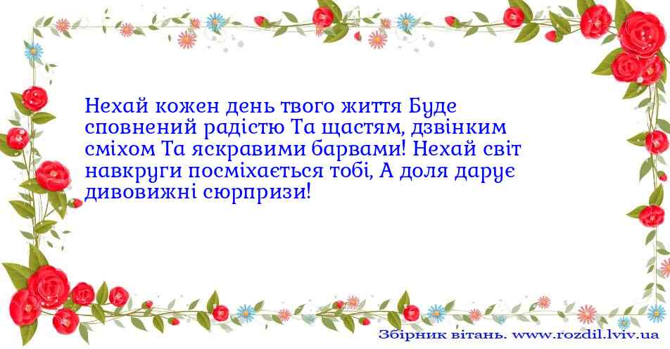 Нехай кожен день твого життя Буде сповнений радістю Та щастям...