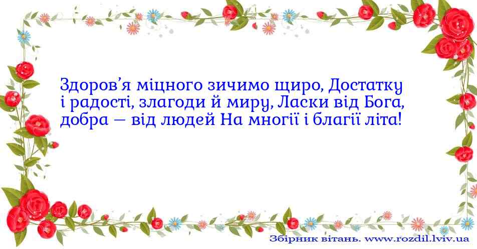Здоров’я міцного зичимо щиро,Достатку і радості, злагоди й миру,