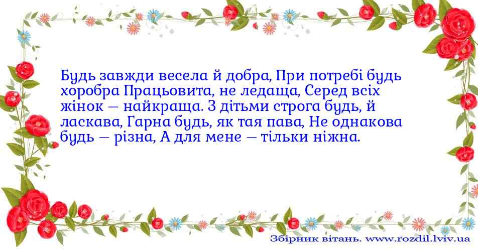 Будь завжди весела й добра, При потребі будь хоробра Працьовита...