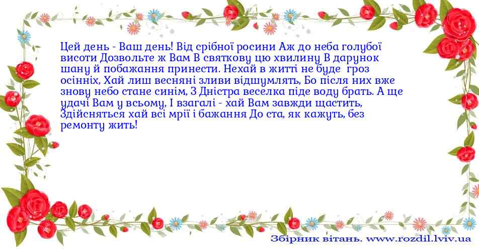 Збірник вітань - це текстове та графічне вітання, які ви можете використати для створення листівки, усного привітання. Вітанням можна продемонструвати своє ставлення до того кого вітають. Якщо об’єднати кілька вітань в одне можна створити оригінальне привітання, яке створить святкову атмосферу навіть тоді, коли привітання прозвучить по телефону або як текстове повідомлення (наприклад: в фейсбук, або вайбер). Створи святковий настрій собі та іншим - привітай близьку людину!