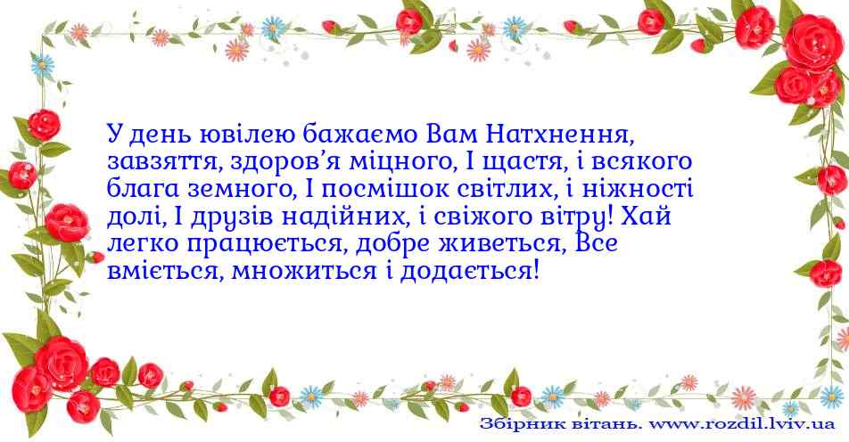 У день ювілею бажаємо ВамНатхнення, завзяття, здоров’я міцного,