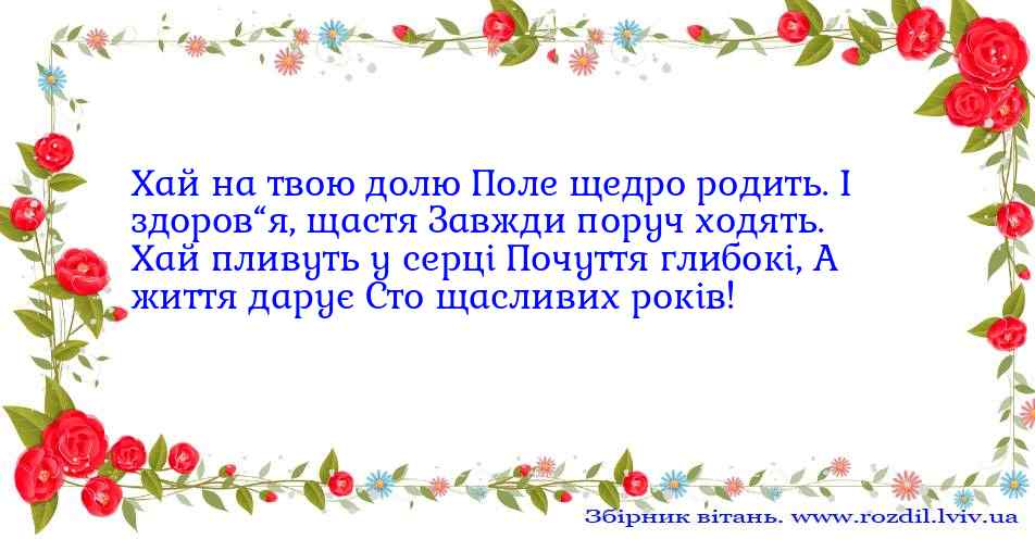Хай на твою долю Поле щедро родить. I здоров“я, щастя...