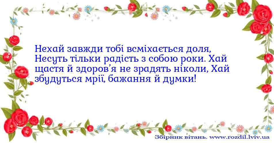 Нехай завжди тобі всміхається доля,Несуть тільки радість з собою роки.
