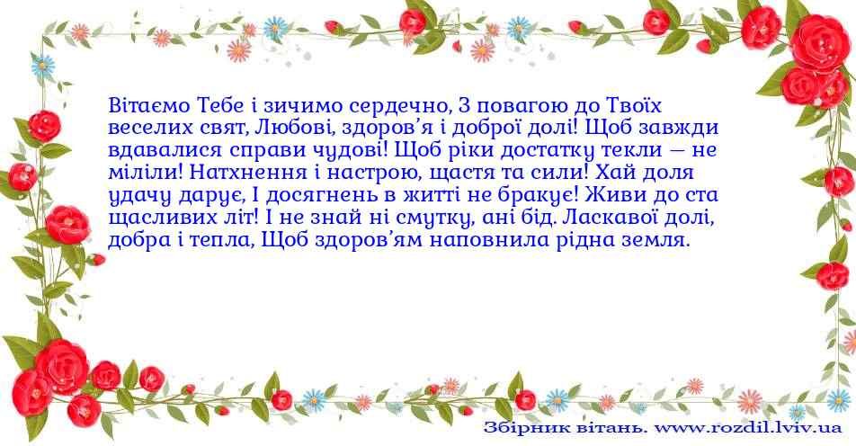 Вітаємо Тебе і зичимо сердечно,З повагою до Твоїх веселих свят,