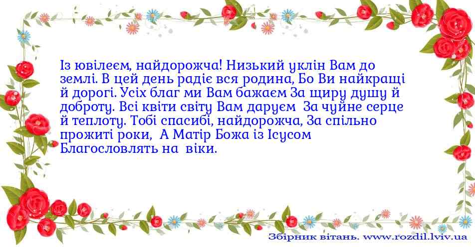 Із ювілеєм, найдорожча!Низький уклін Вам до землі.