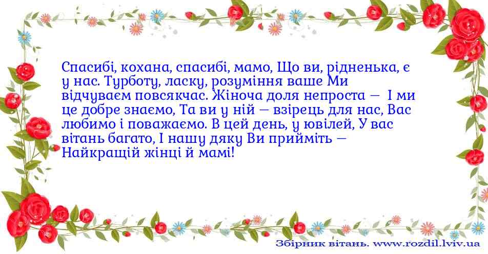 Спасибі, кохана, спасибі, мамо, Що ви, рідненька, є у нас...