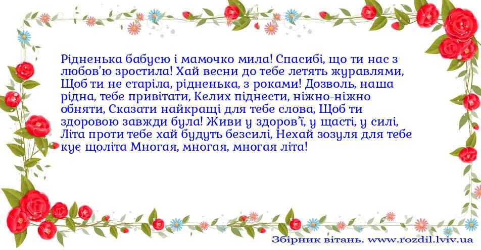 Рідненька бабусю і мамочко мила!Спасибі, що ти нас з любов’ю зростила!