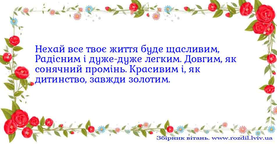 Нехай все твоє життя буде щасливим,Радісним і дуже-дуже легким.