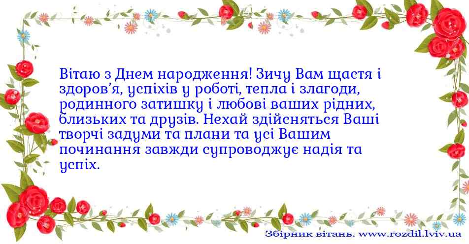 Вітаю з Днем народження! Зичу Вам щастя і здоров’я, успіхів...