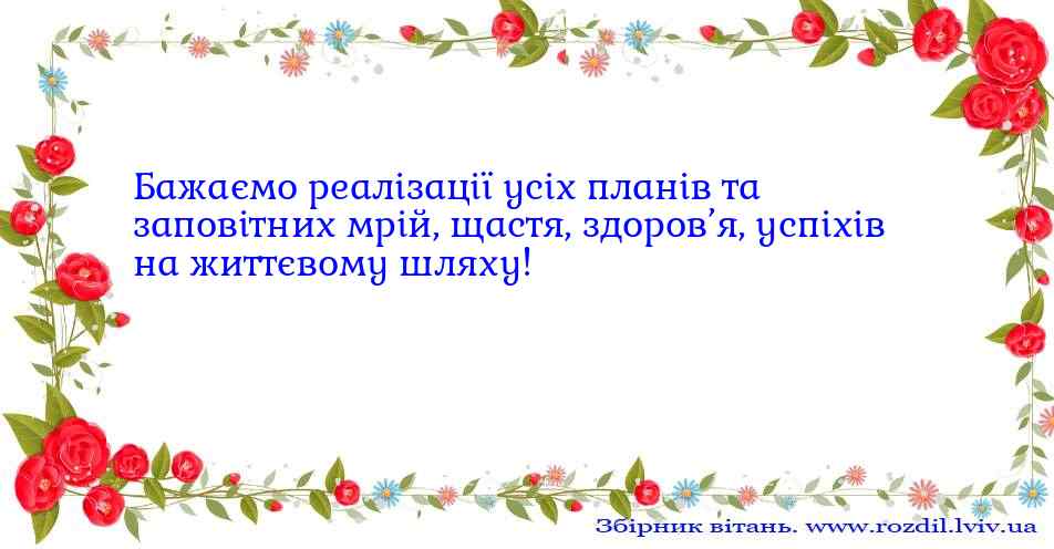 Бажаємо реалізації усіх планів та заповітних мрій, щастя, здоров’я, успіхів на життєвому шляху!вітання №554
