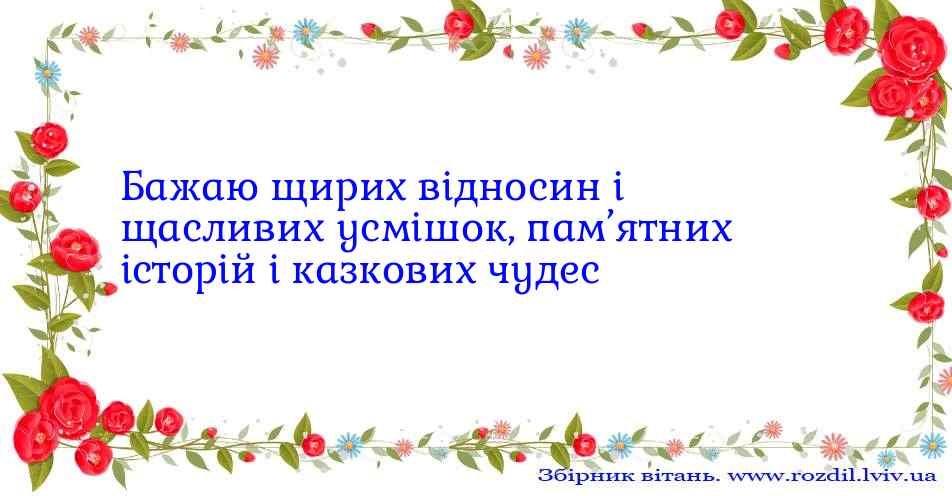 Бажаю щирих відносин і щасливих усмішок, пам’ятних історій і казкових...