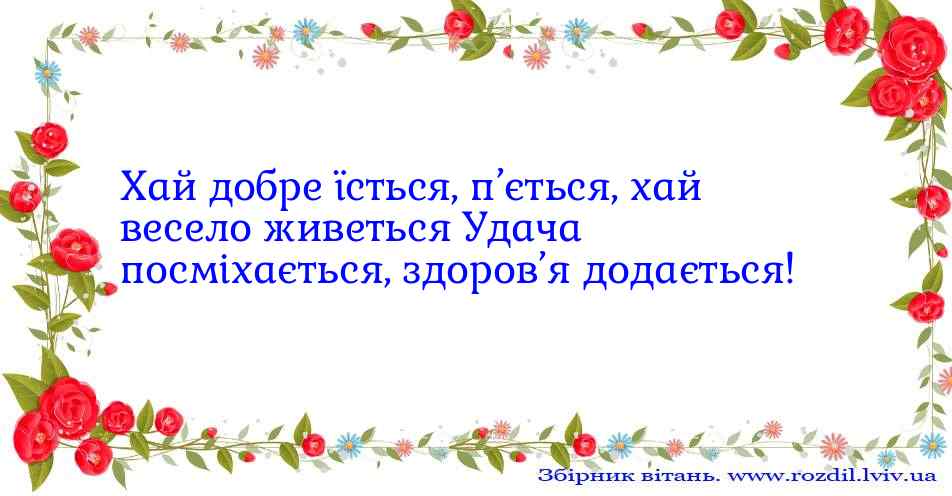 Хай добре їсться, п’ється, хай весело живетьсяУдача посміхається, здоров’я додається!