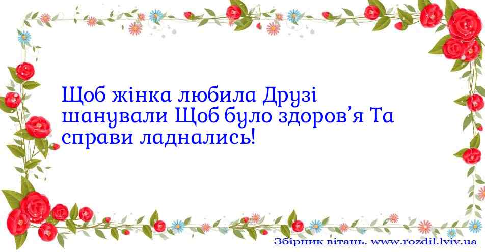 Щоб жінка любила Друзі шанували Щоб було здоров’я Та справи...