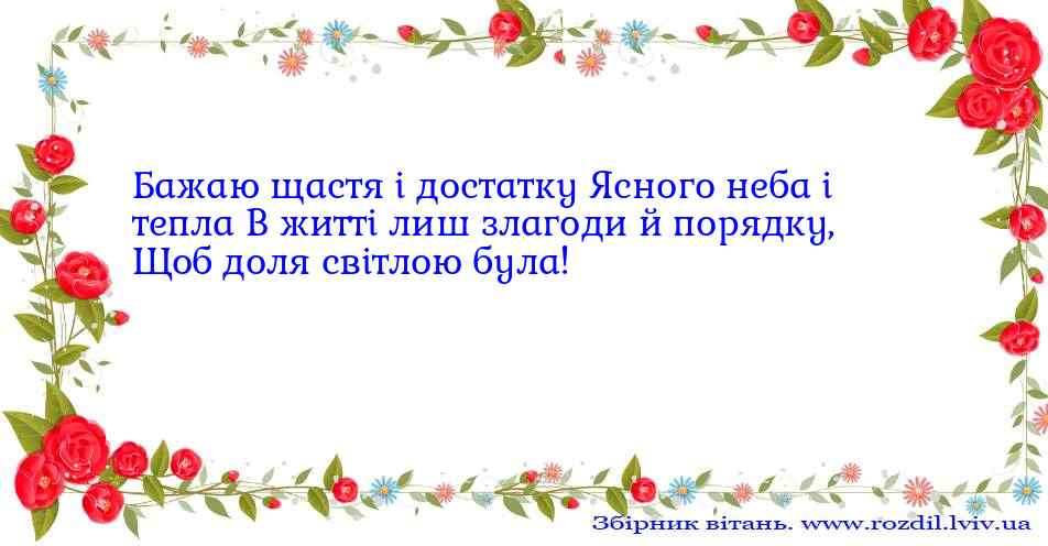 Бажаю щастя і достатку Ясного неба і тепла В житті...
