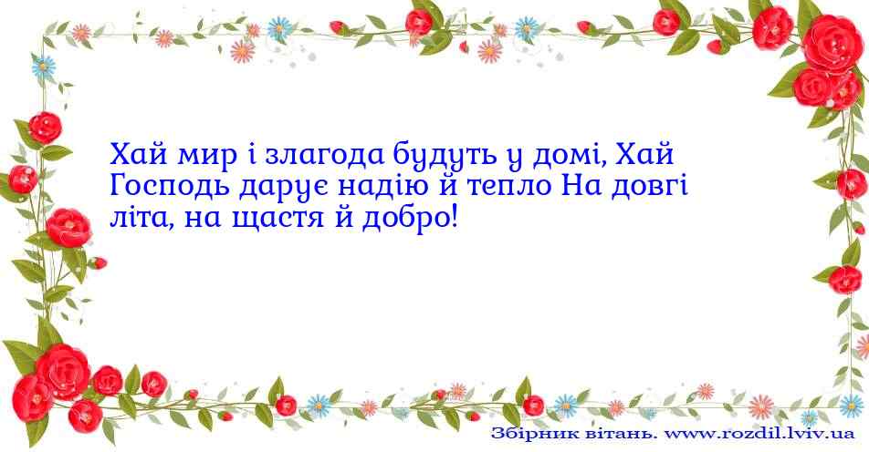 Хай мир і злагода будуть у домі,Хай Господь дарує надію й тепло