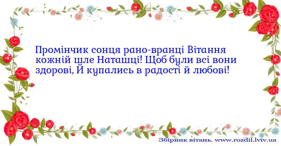 Промінчик сонця рано вранці Вітання кожній шле Наташці! Щоб були всі...