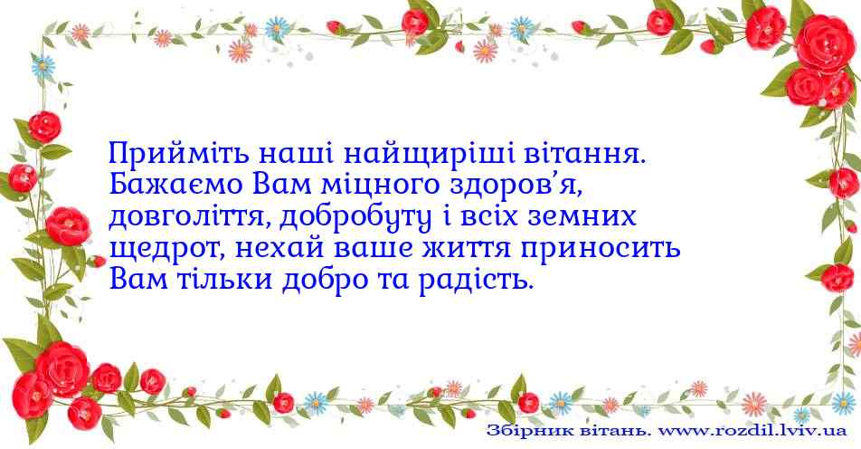 Прийміть наші найщиріші вітання. Бажаємо Вам міцного здоров’я, довголіття, добробуту...
