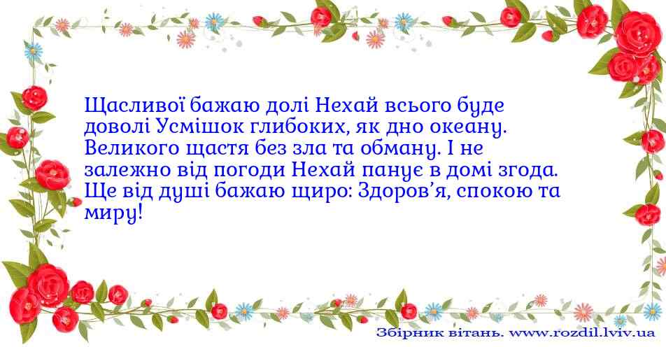 Щасливої бажаю долі Нехай всього буде доволі Усмішок глибоких, як...
