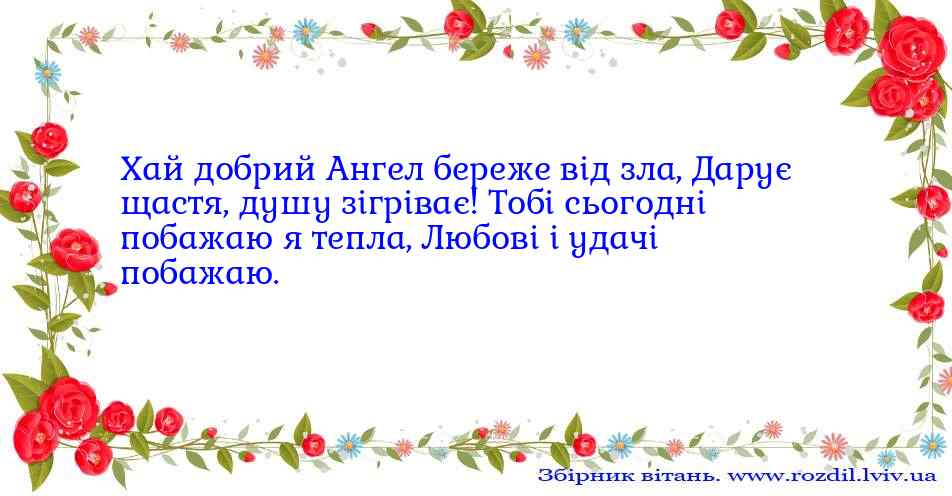 Хай добрий Ангел береже від зла,Дарує щастя, душу зігріває!