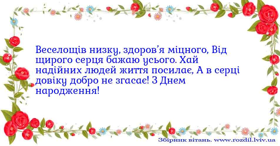 Веселощів низку, здоров’я міцного,Від щирого серця бажаю усього.