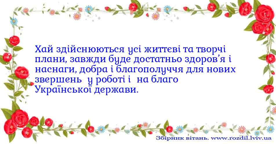 Хай здійснюються усі життєві та творчі плани,завжди буде достатньо здоров’я і наснаги,