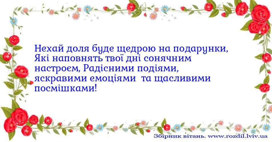 Нехай доля буде щедрою на подарунки, Які наповнять твої дні...