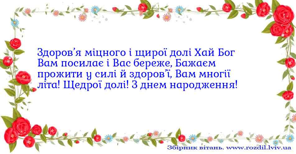 Здоров’я міцного і щирої доліХай Бог Вам посилає і Вас береже,