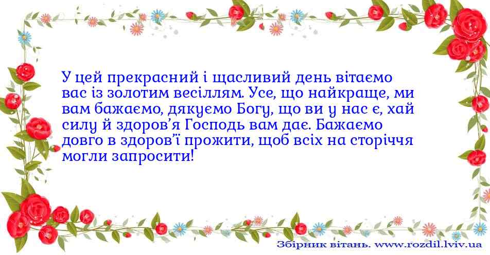У цей прекрасний і щасливий день вітаємо вас із золотим...