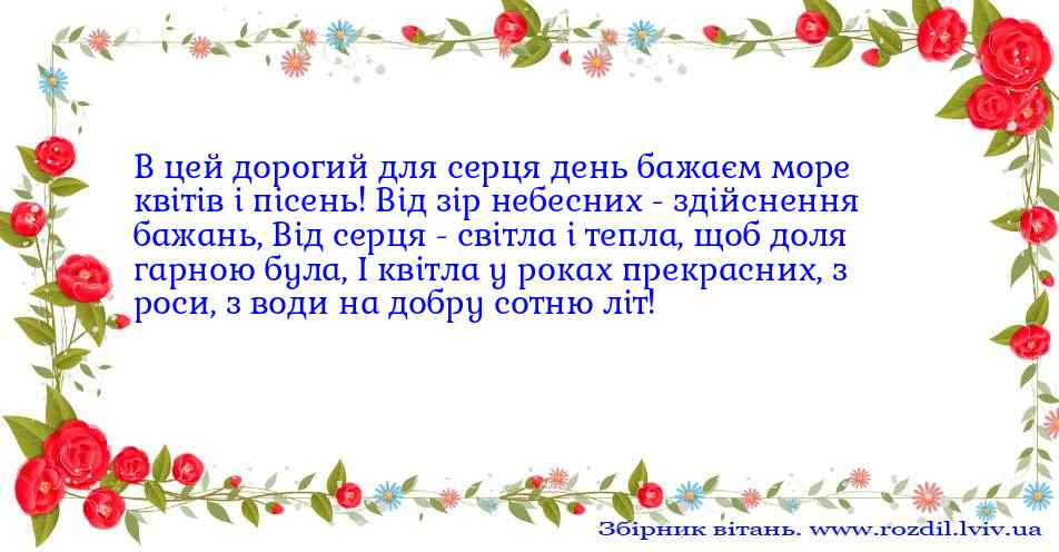 В цей дорогий для серця день бажаєм море квітів і пісень!Від зір небесних - здійснення бажань,