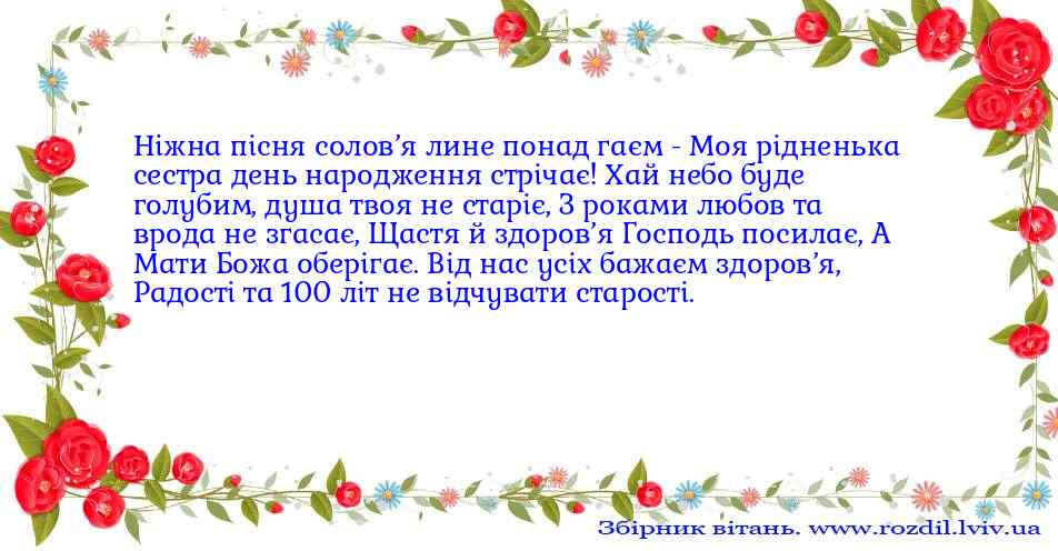 Ніжна пісня солов’я лине понад гаєм -Моя рідненька сестра день народження стрічає!