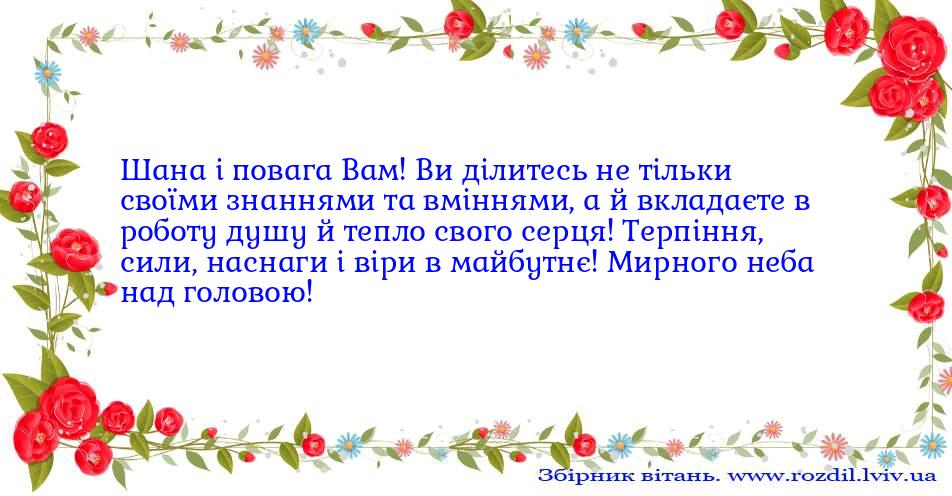 Приклад: «Ваша праця - це справжнє мистецтво/покликання. Дякуємо за вашу невтомність і те тепло, яке ви віддаєте людям. Нехай натхнення ніколи не покидає вас, а результати роботи перевершують сподівання!»