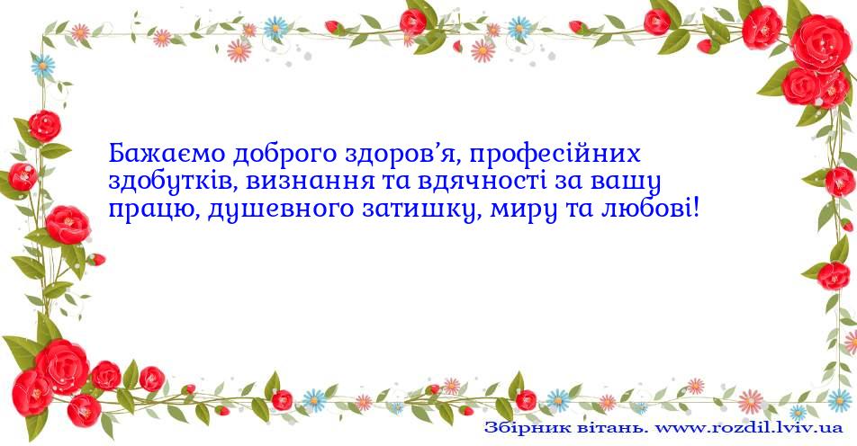 Бажаємо доброго здоров’я, професійних здобутків, визнання та вдячності за вашу працю, душевного затишку, миру та любові!